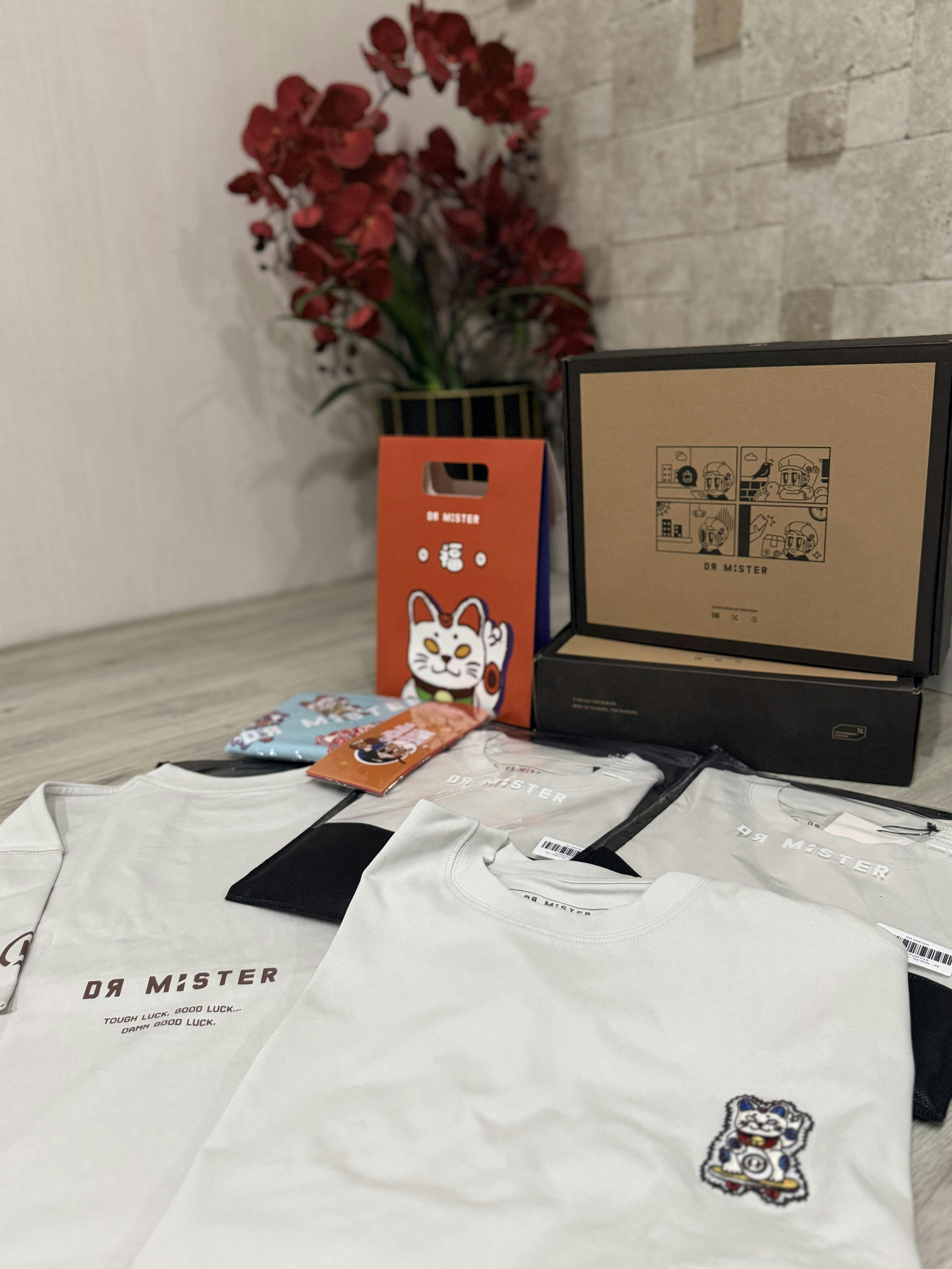Made from heavy combed cotton, this tee features a 6-colours detailed embroidery of the lucky cat on the front in a unique colour palette on ice grey for the perfect combination. The back showcases the tee slogan along with the brand logotype
